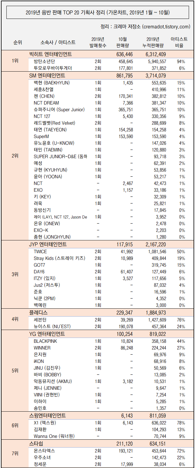 해당자료는 가온차트 앨범 월간 TOP 100에 차트인 된 앨범 기준입니다.